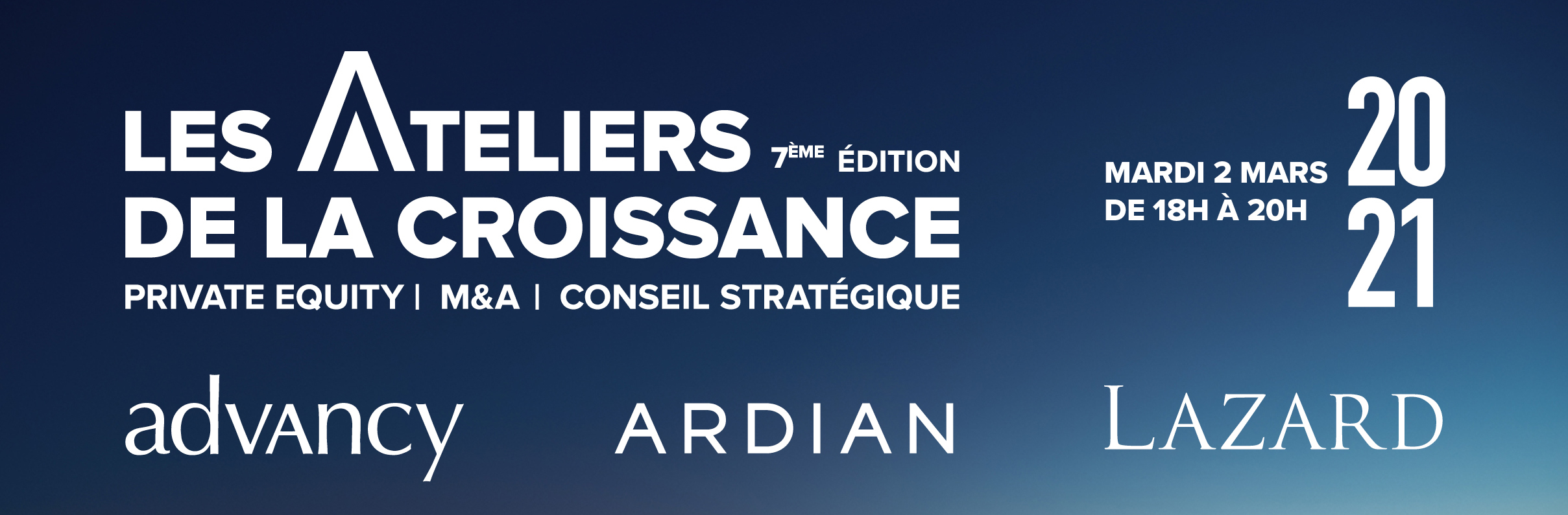 Co-organisés pour la 7ème édition par la société d'investissement trinity gate investments, le cabinet de conseil en stratégie Advancy et la banque d'affaires Lazard, les Ateliers de la Croissance sont un temps d'échange privilégié entre étudiants et trois grands acteurs de la finance et de la stratégie.